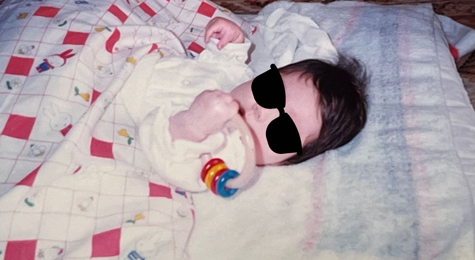 現像した写真をスマホで撮影したため、画質が悪くて申し訳ありません。お布団の柄から、平成初期の時代を感じます。
