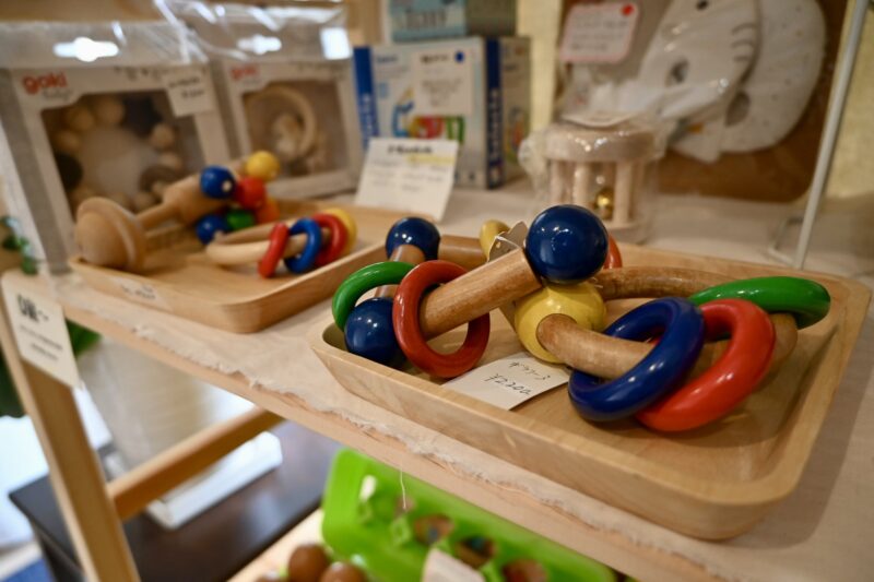 来店されるお客さまの中には、赤ちゃんを抱っこして訪れる方も多く、「おもちゃについても知りたい」という声が寄せられるようになりました。