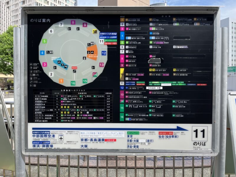 駅前のバスターミナルは、いったん地下通路を抜けて上がると、環状に乗り場が整備されています。